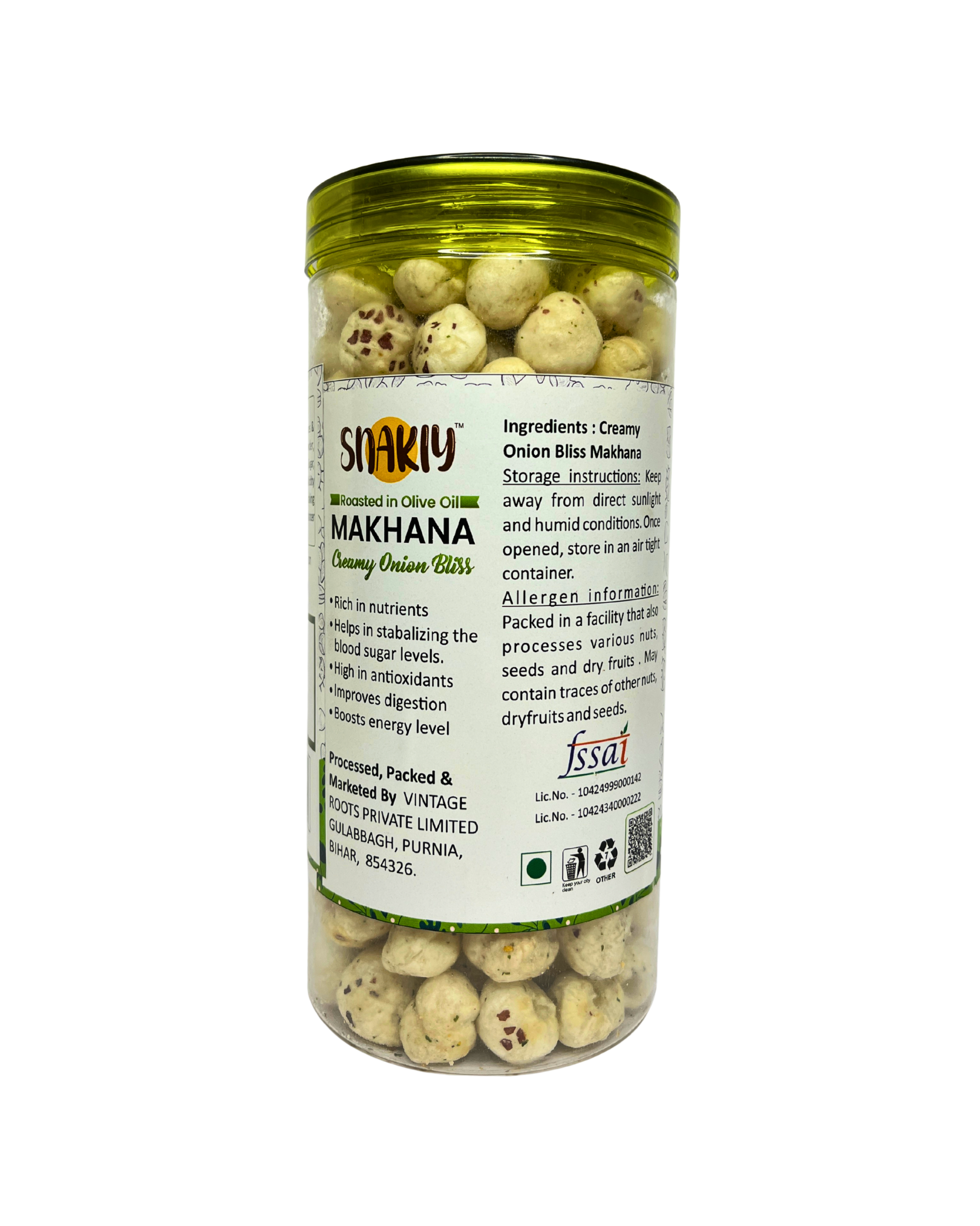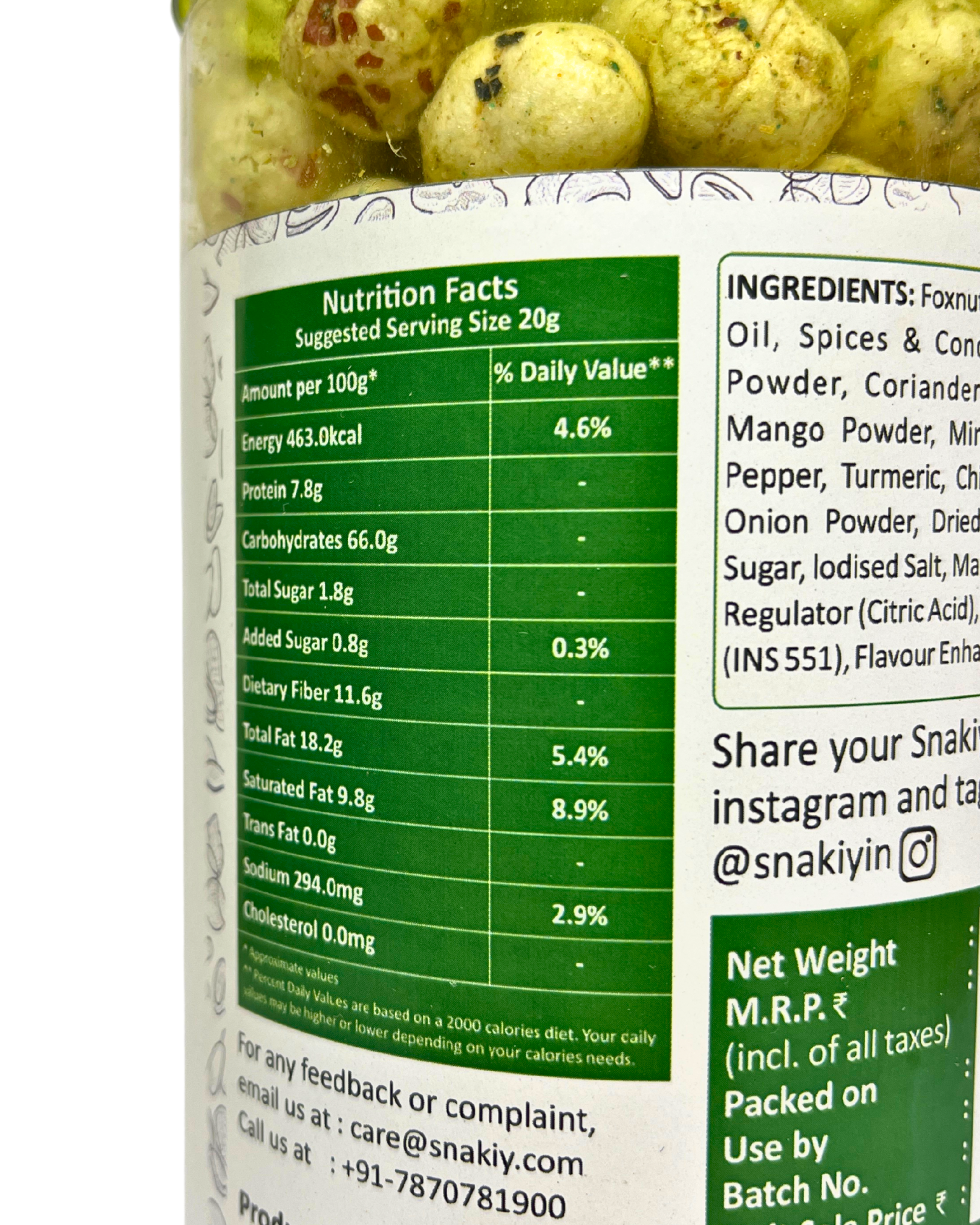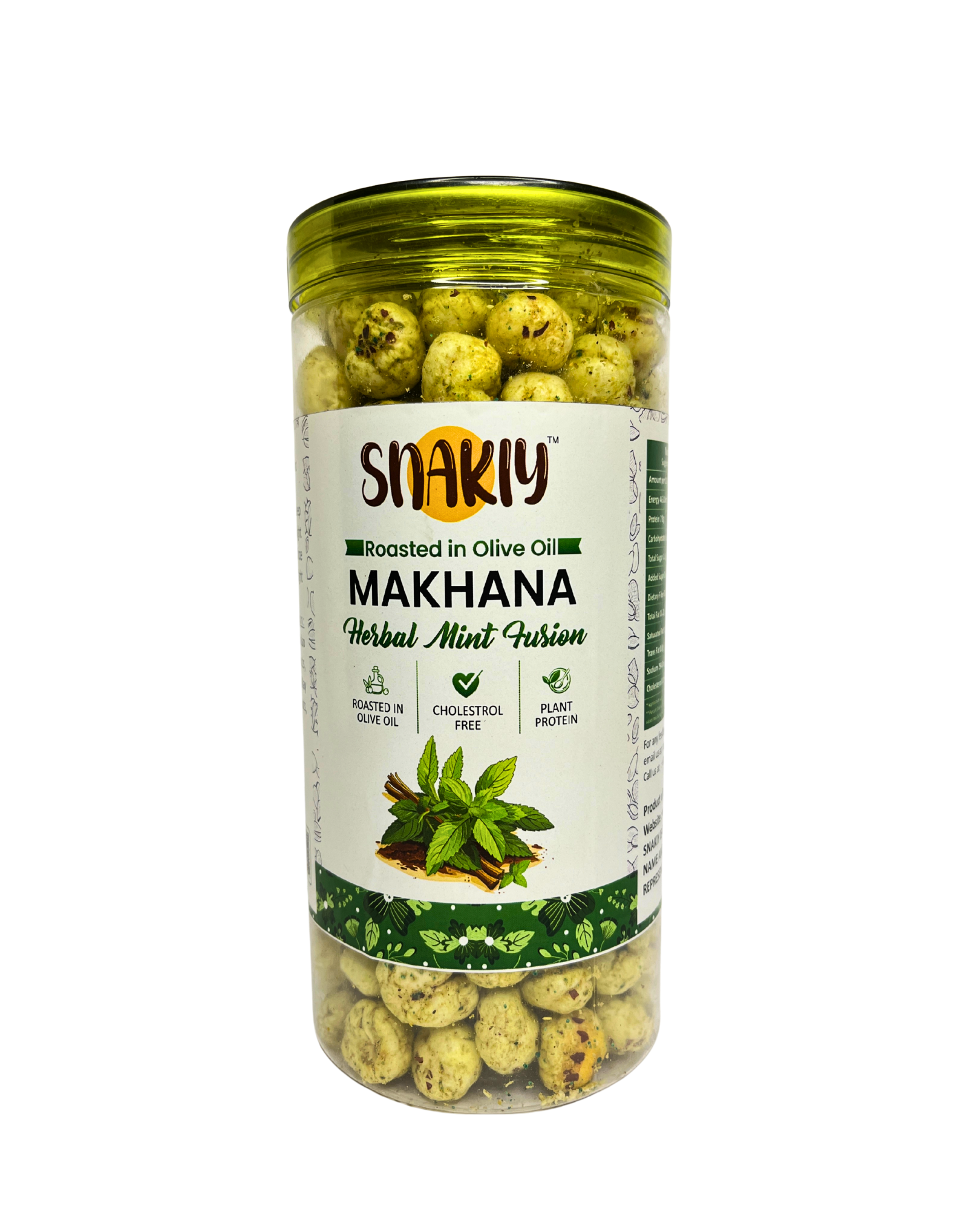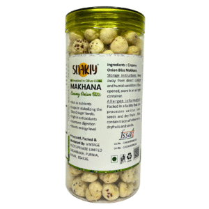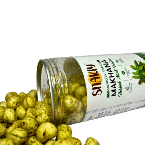 Herbal Mint Makhana is a light, crunchy, and healthy snack made from roasted fox nuts, infused with refreshing mint and natural herbs. Rich in protein, calcium, and antioxidants, it is an ideal guilt-free snack for all age groups. The cooling mint flavor not only adds a refreshing taste but also aids digestion, making it perfect for mindful snacking at home, work, or while traveling.